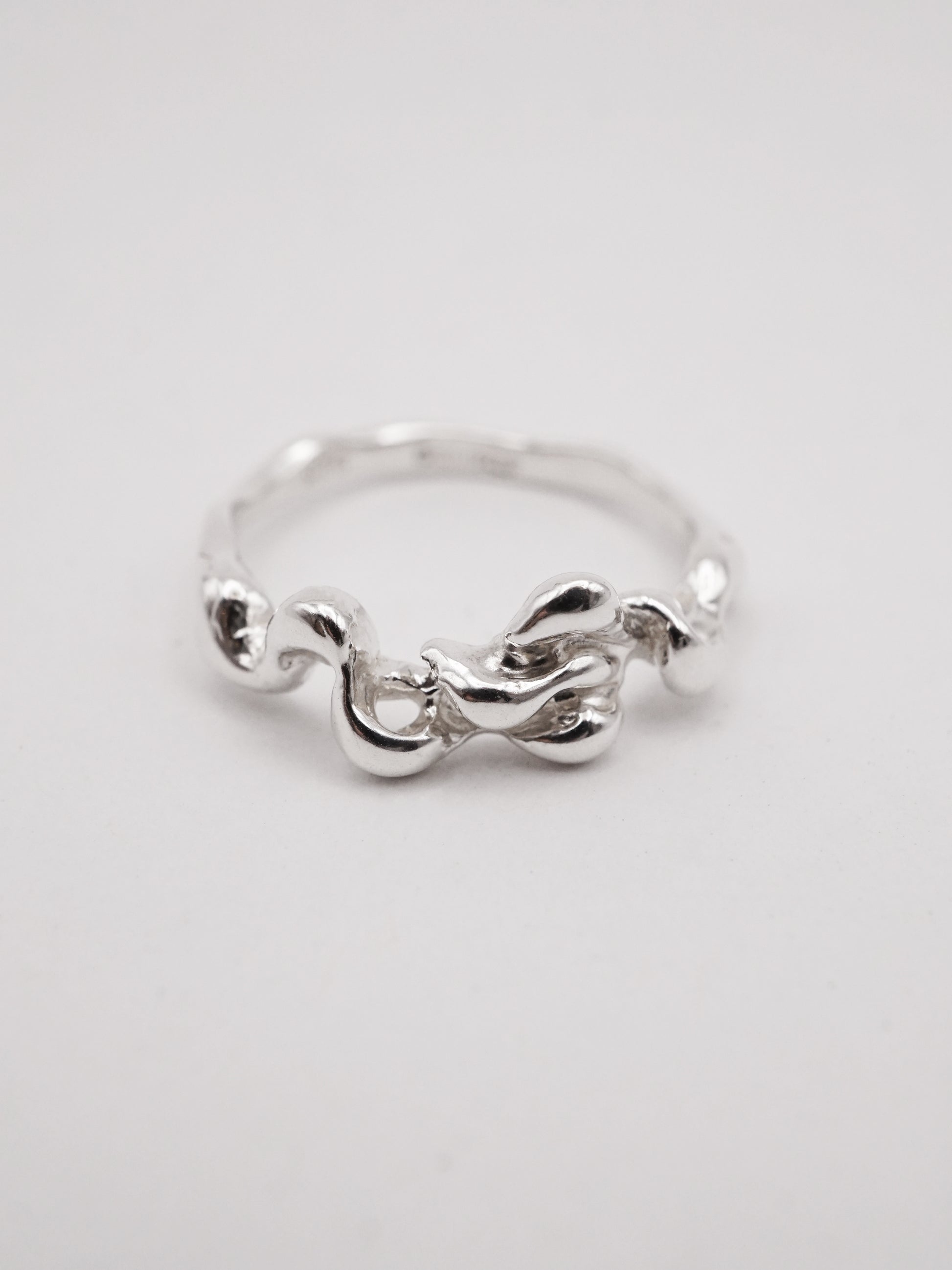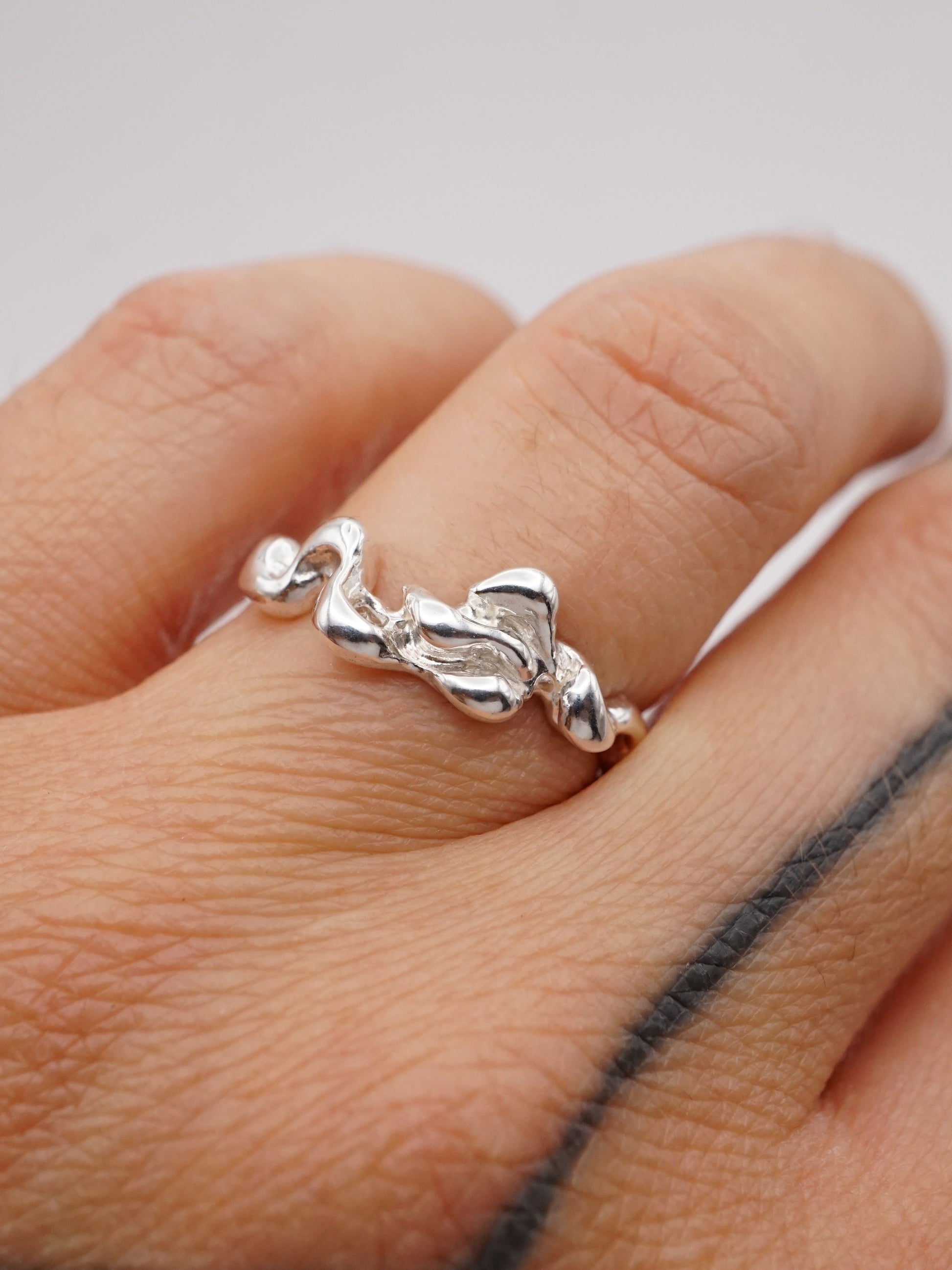 This ring was first carved in wax and then cast in solid sterling silver.