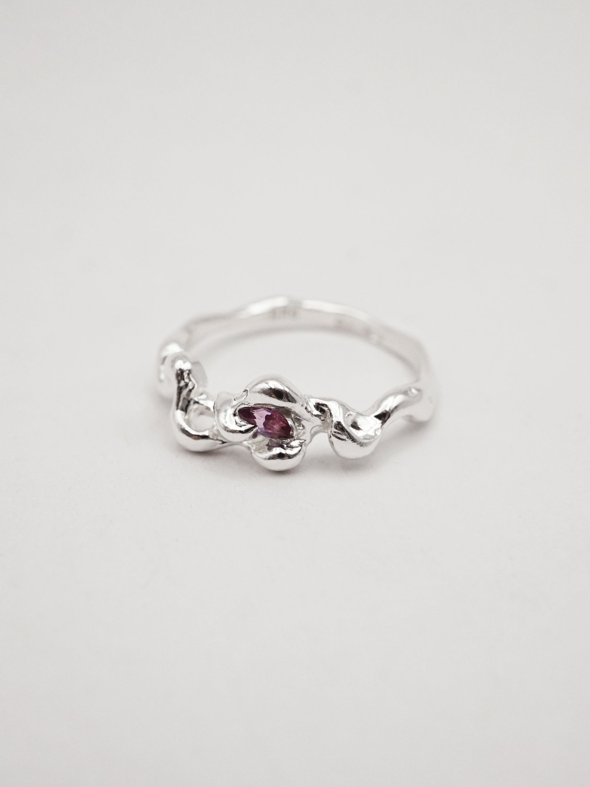 Cette bague a d'abord été sculptée dans la cire puis coulée en argent sterling massif.
