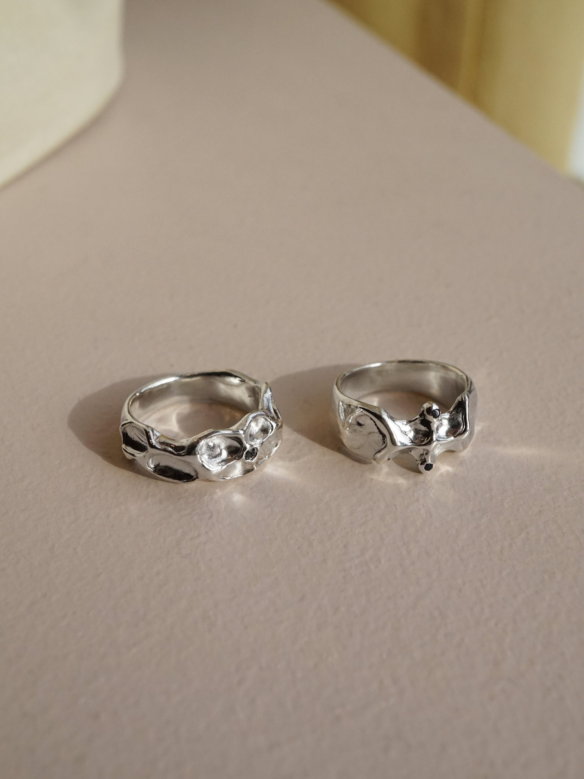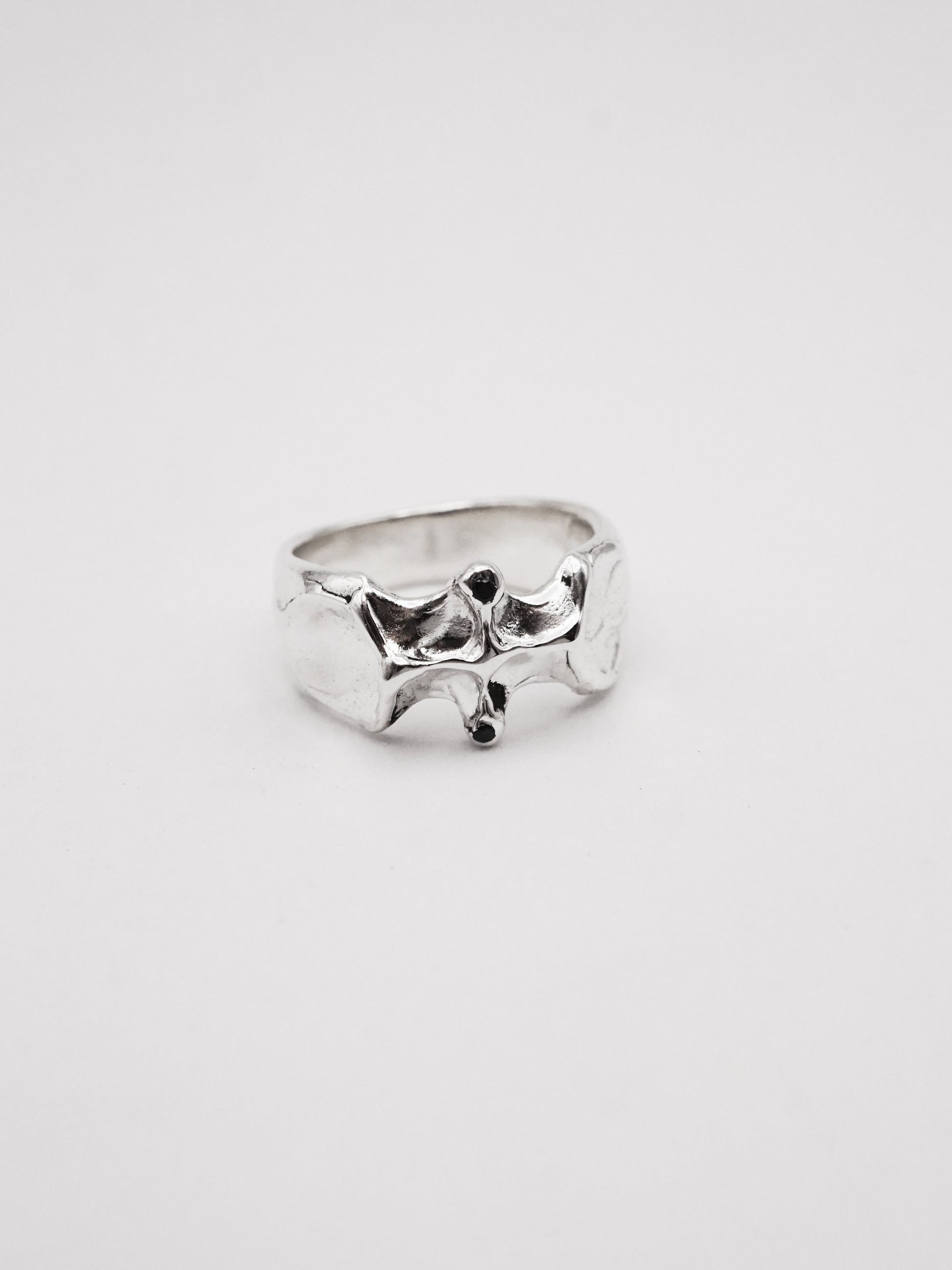 Cette bague a d'abord été sculptée dans la cire puis coulée en argent.