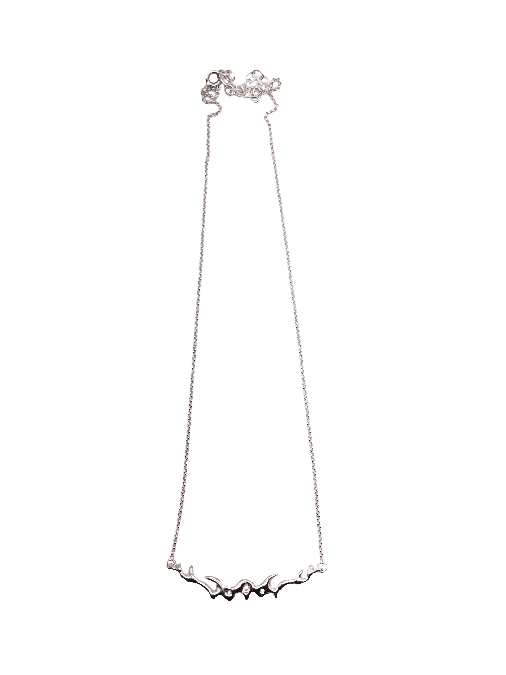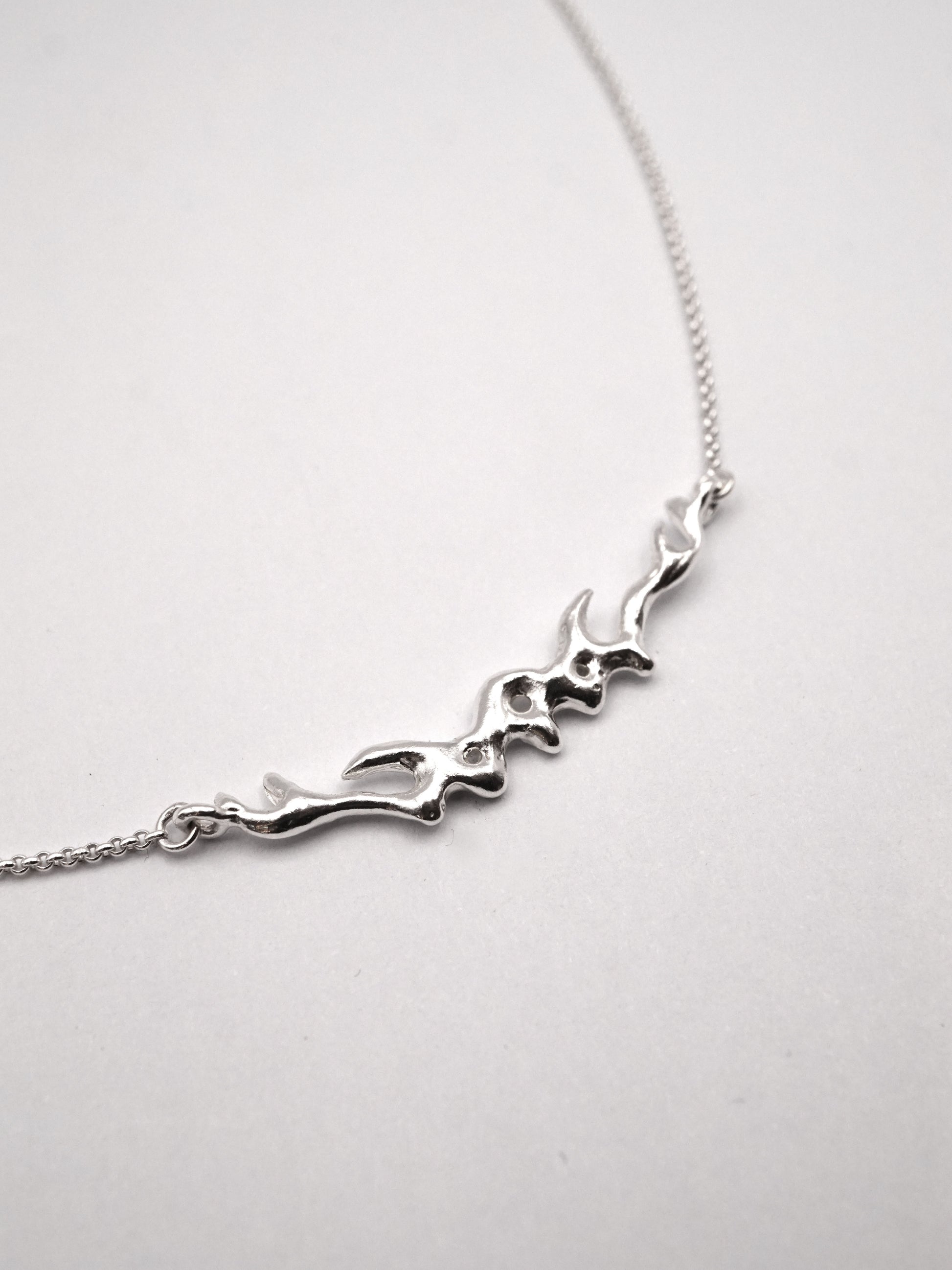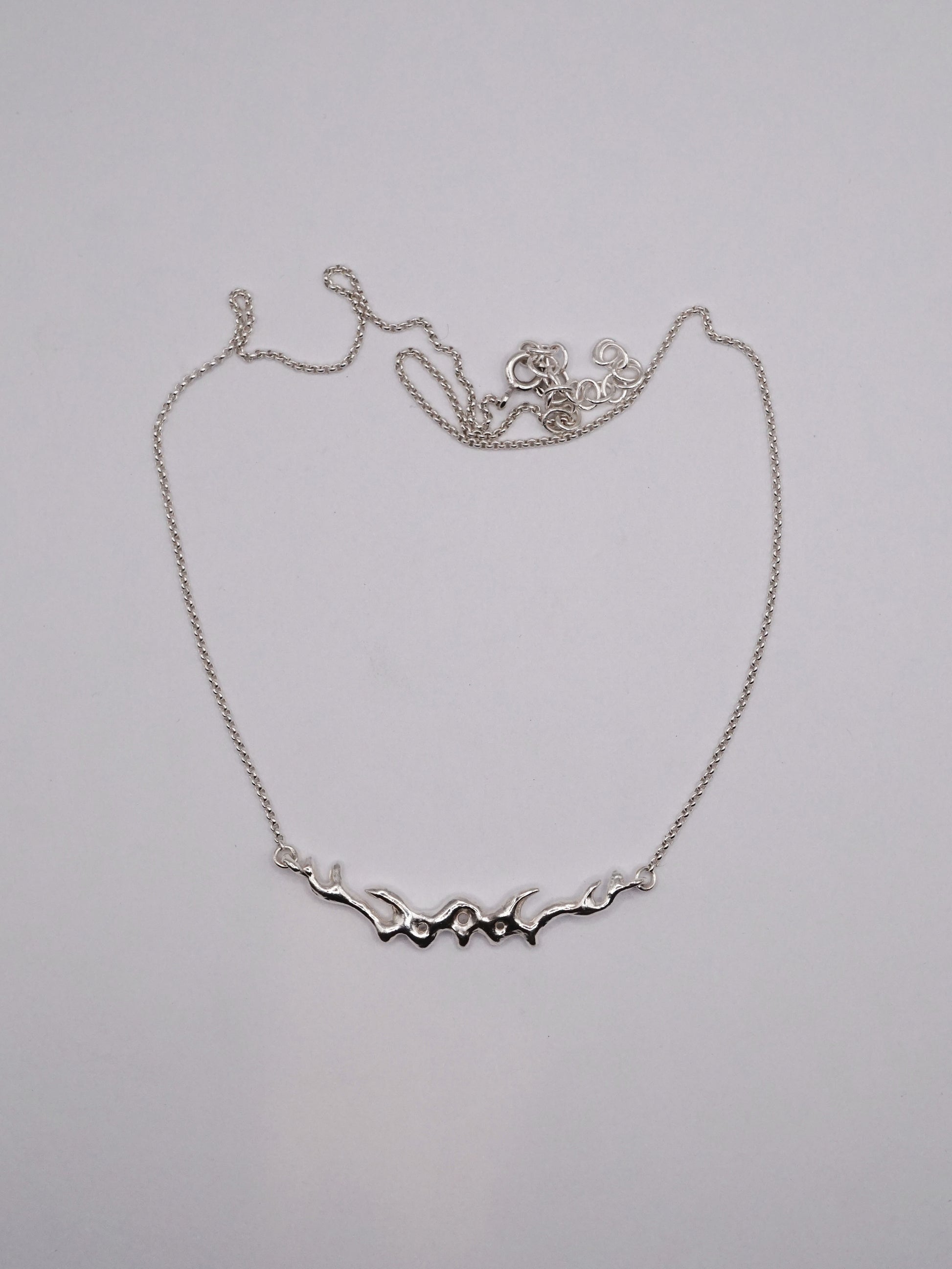 La partie centrale de ce collier a d'abord été sculptée dans la cire, puis coulée en argent.