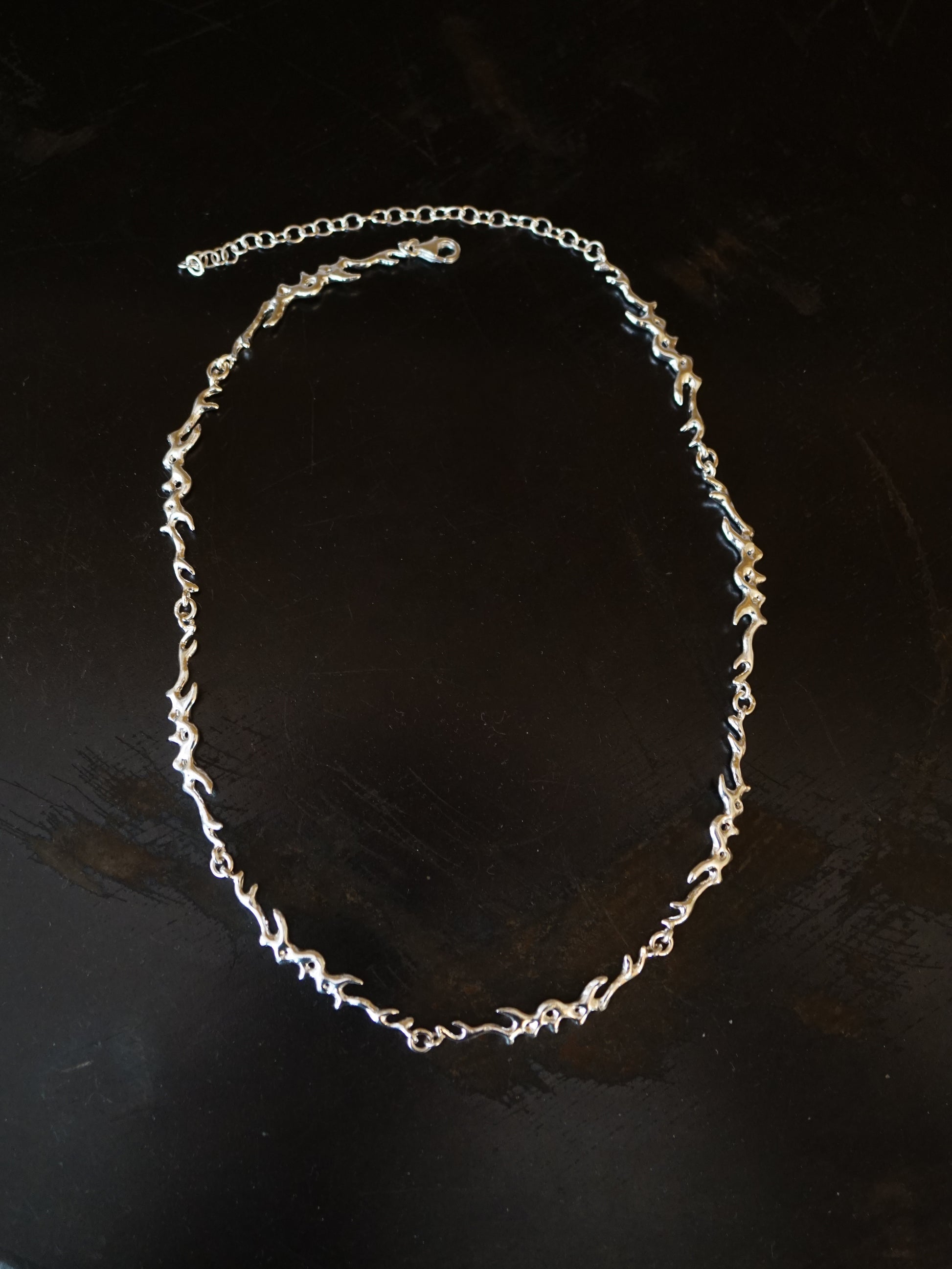 Chaque maillon de ce collier a d'abord été sculpté dans la cire, puis coulé en argent.